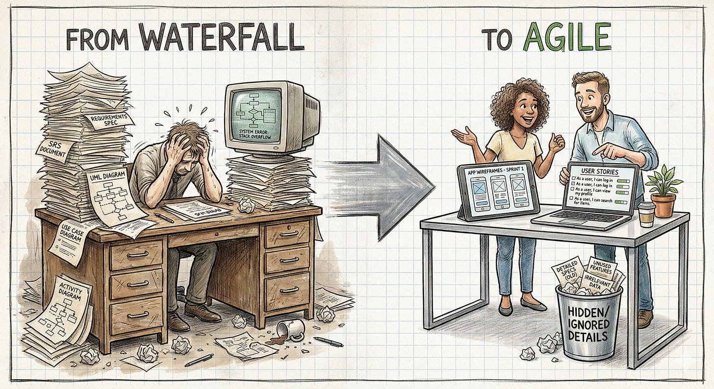 We wrote functional and non-functional requirements. We drew UML diagrams until our eyes bled. We specified class hierarchies for systems that didn’t exist yet. We used IBM Rational Rose. We felt very professional.